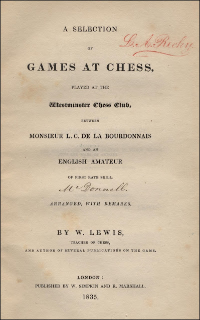 1835:3 Lewis, A selection of games (de la Bourdonnais v McDonnell)